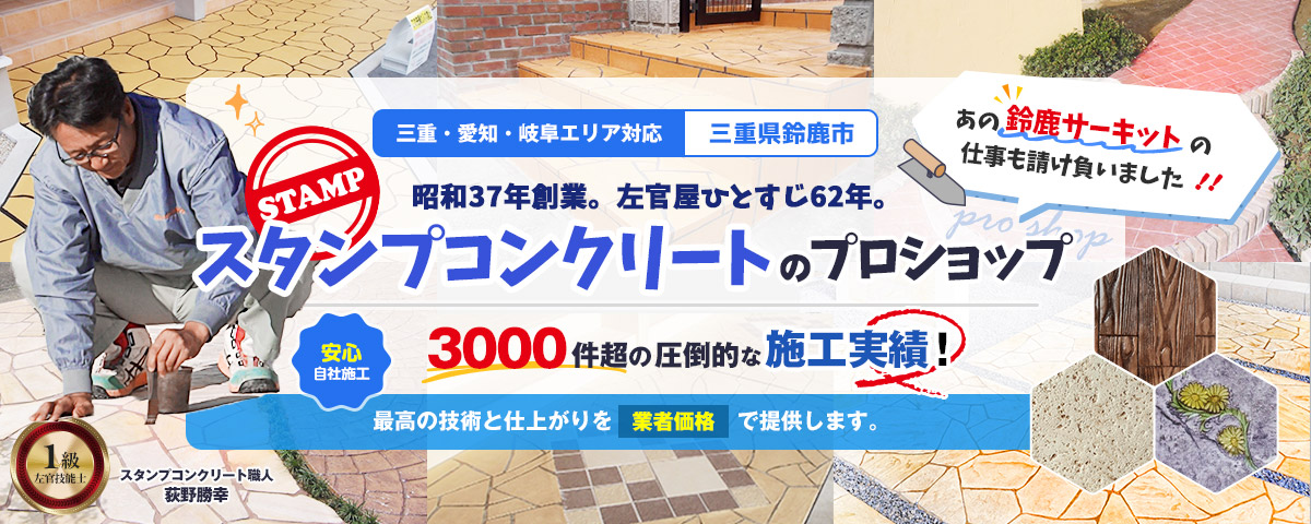 鈴鹿市|スタンプコンクリート展示場を公開中、駐車場の施工実例あり