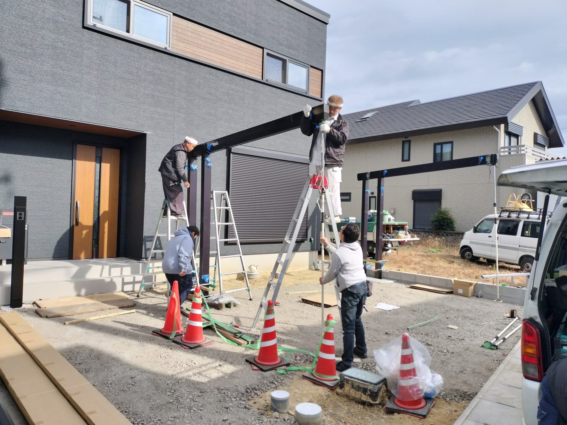 柱2本の工事に見えても、実際は基礎が二基、必要な工事です。