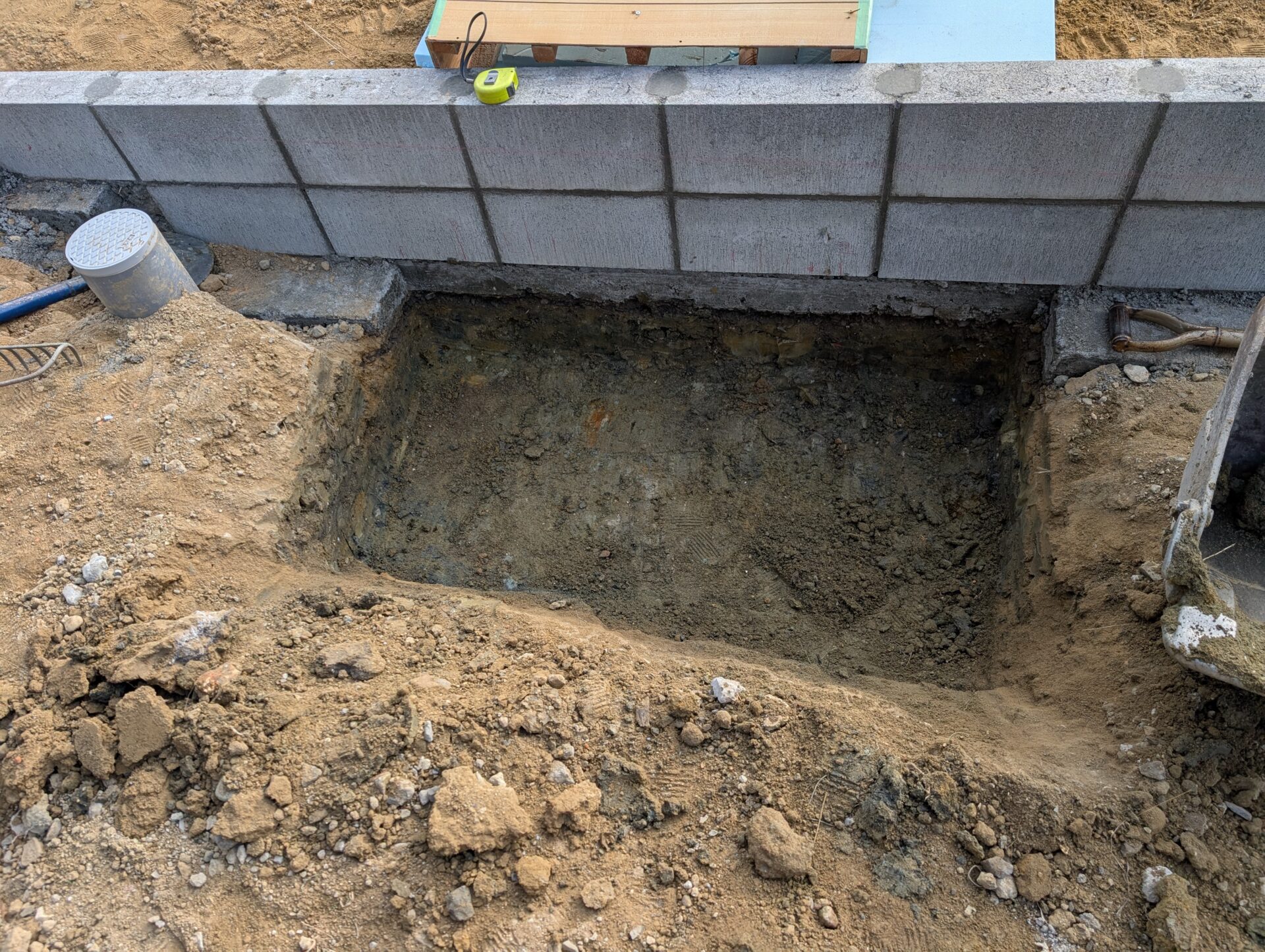 掘削と型枠と生コン打設と締固めの一連がコンクリート基礎工事です。