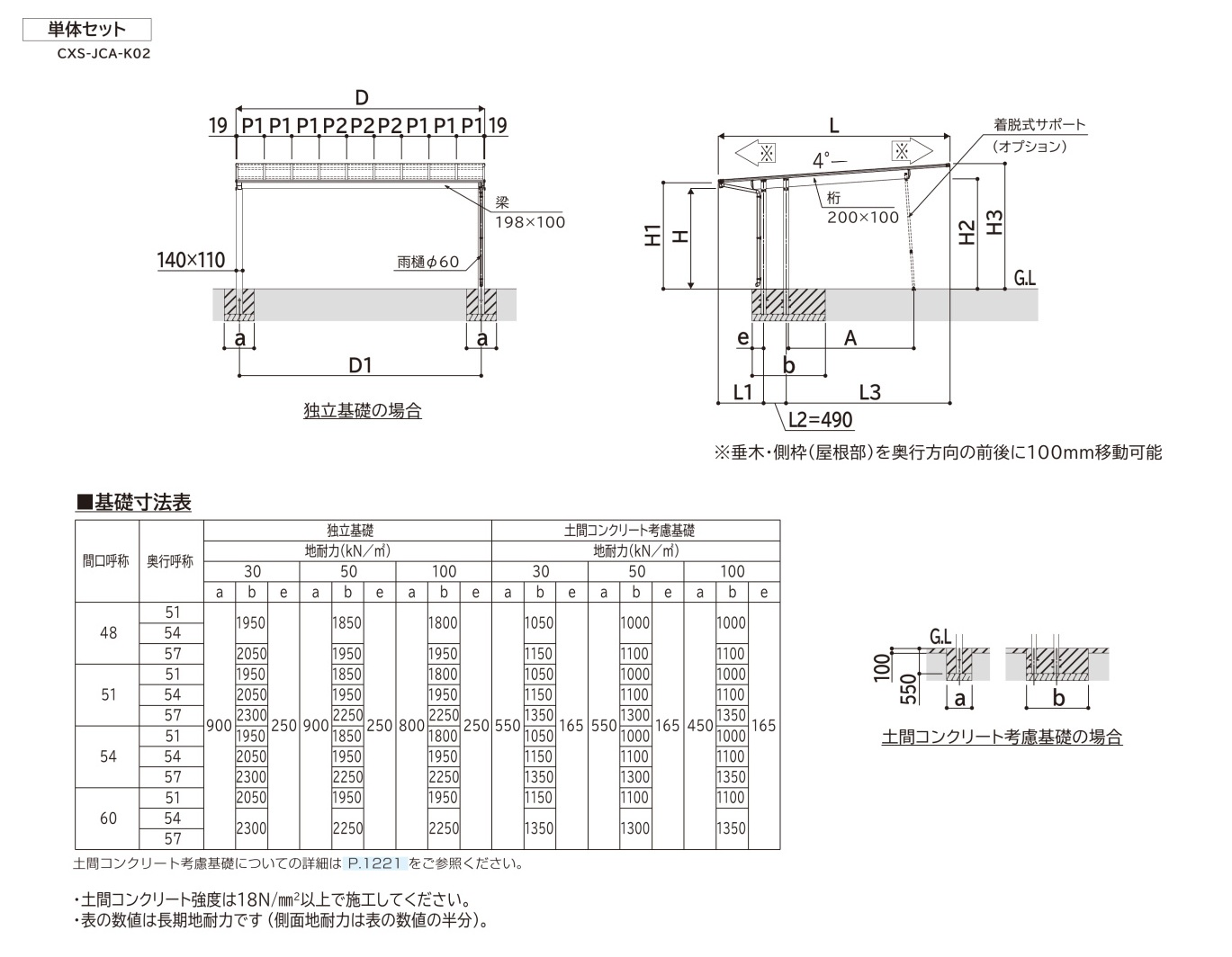 カーポート柱の独立基礎構造とYKK施工納まり参考図