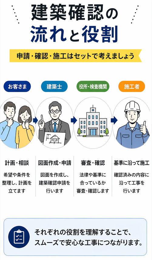 このあたりは計画内容によって変わるため、まずは建築確認が関係するかどうかを整理することが大切です。