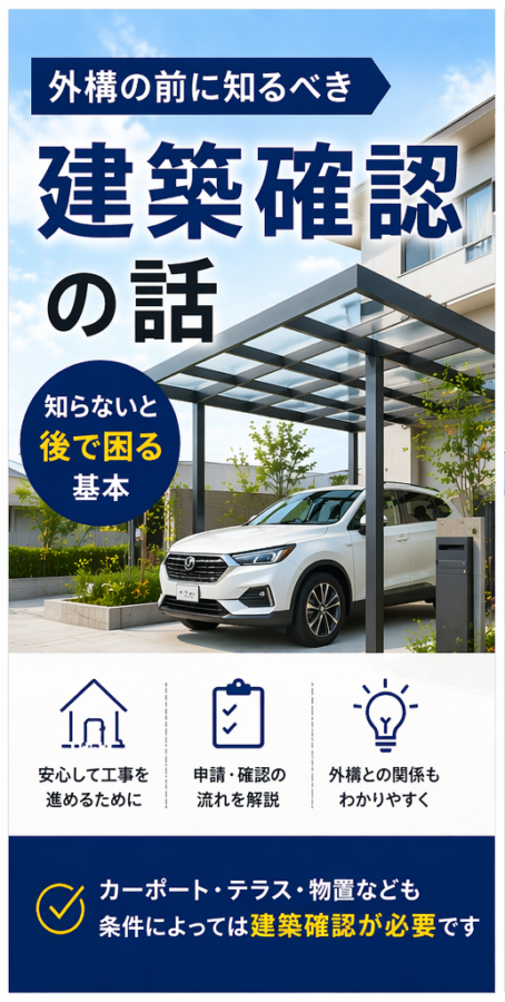 特にカーポートやテラス屋根などを検討している場合は、一度この建築確認の視点を知っておくことをおすすめします。