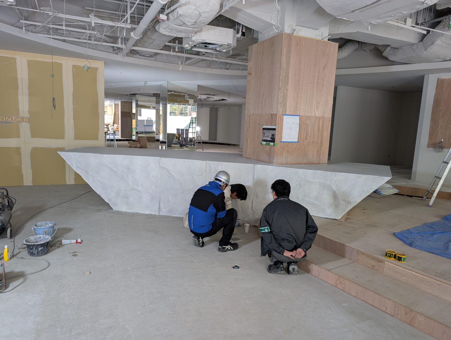 商業・店舗空間の擬岩モルタル施工事例|ロックワーク・エイジング塗装