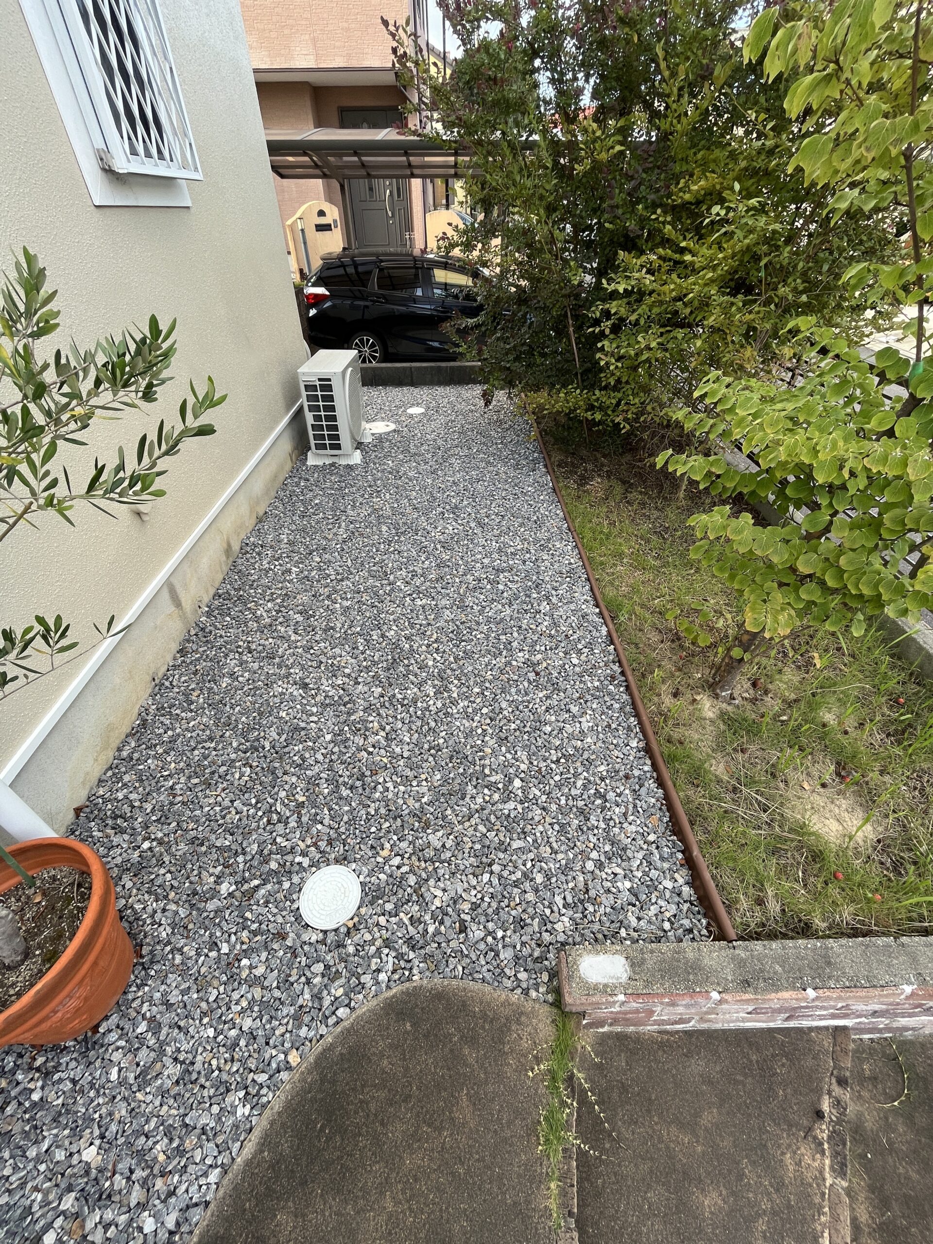 また、防草シートと化粧砂利を敷設することで、雑草の発生を抑制し、維持管理の負担を大幅に軽減しました。