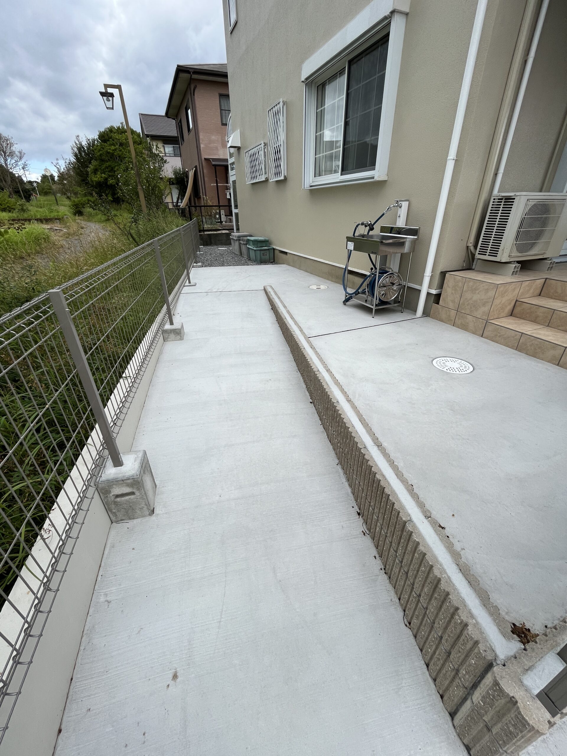 建物の構造的健全性を維持するため、床下の換気を妨げないグレーチング(排水溝の蓋)の設置や、安全な動線を確保するスロープの造成など、細部にわたり専門的な配慮を施しています。