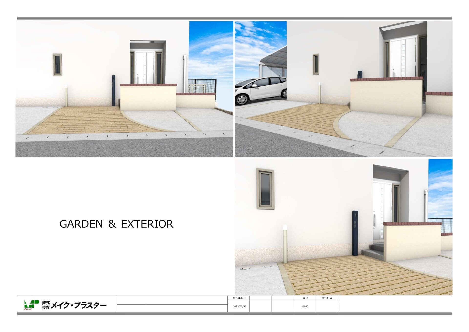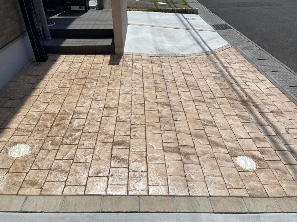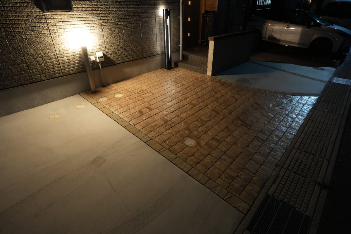 今回は「駐車スペースの拡張」や「玄関まわりのスタンプコンクリート施工」など、日常の使い勝手と美しさを両立させたプランです。