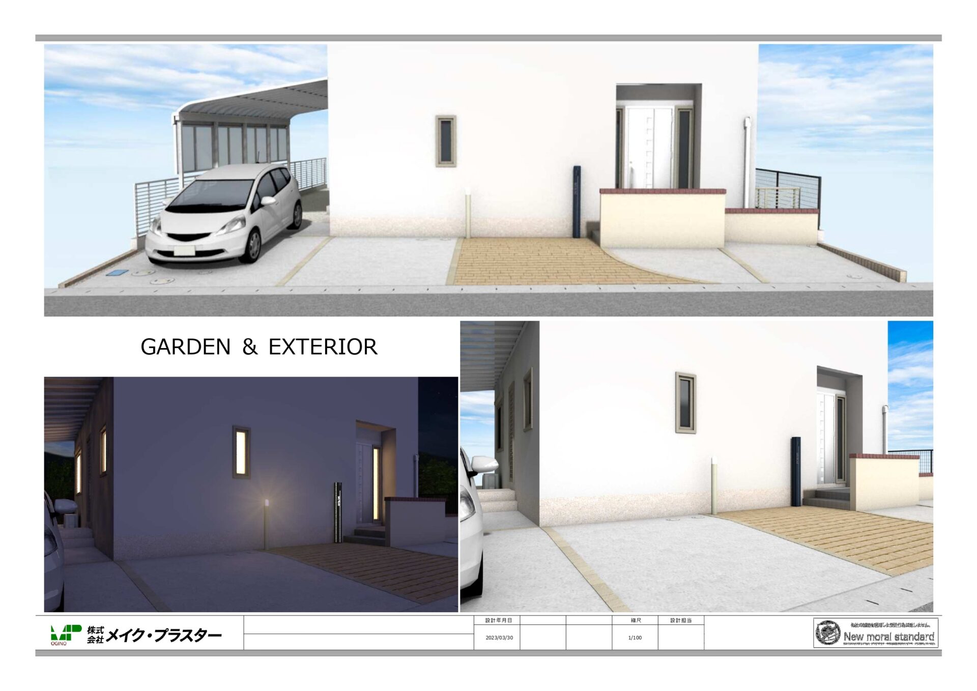 お打ち合わせの段階から、「駐車場の広がり方」や「門柱とアプローチの位置関係」をビジュアルで確認できるため、「なるほど、こうなるんですね」とその場でご納得いただくことができました。
