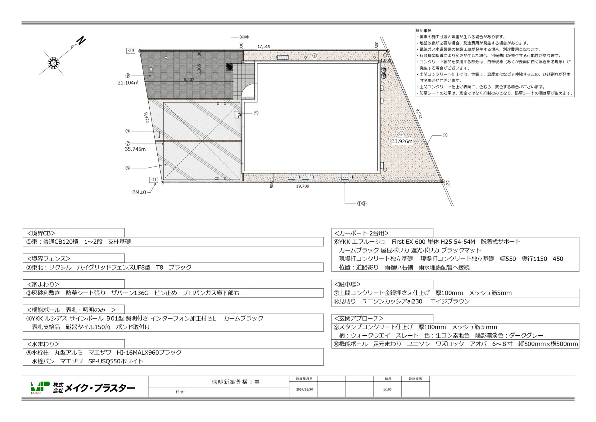 ●駐車場、アプローチ、境界フェンスまわりに重点施工