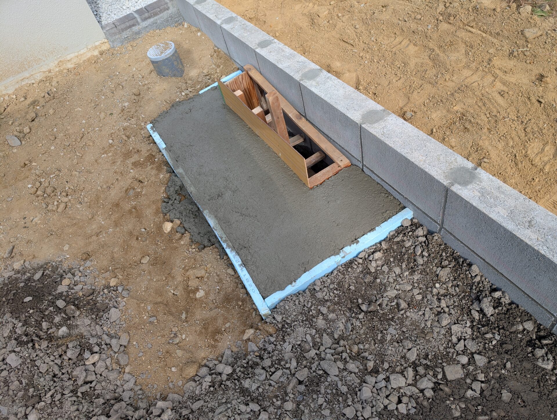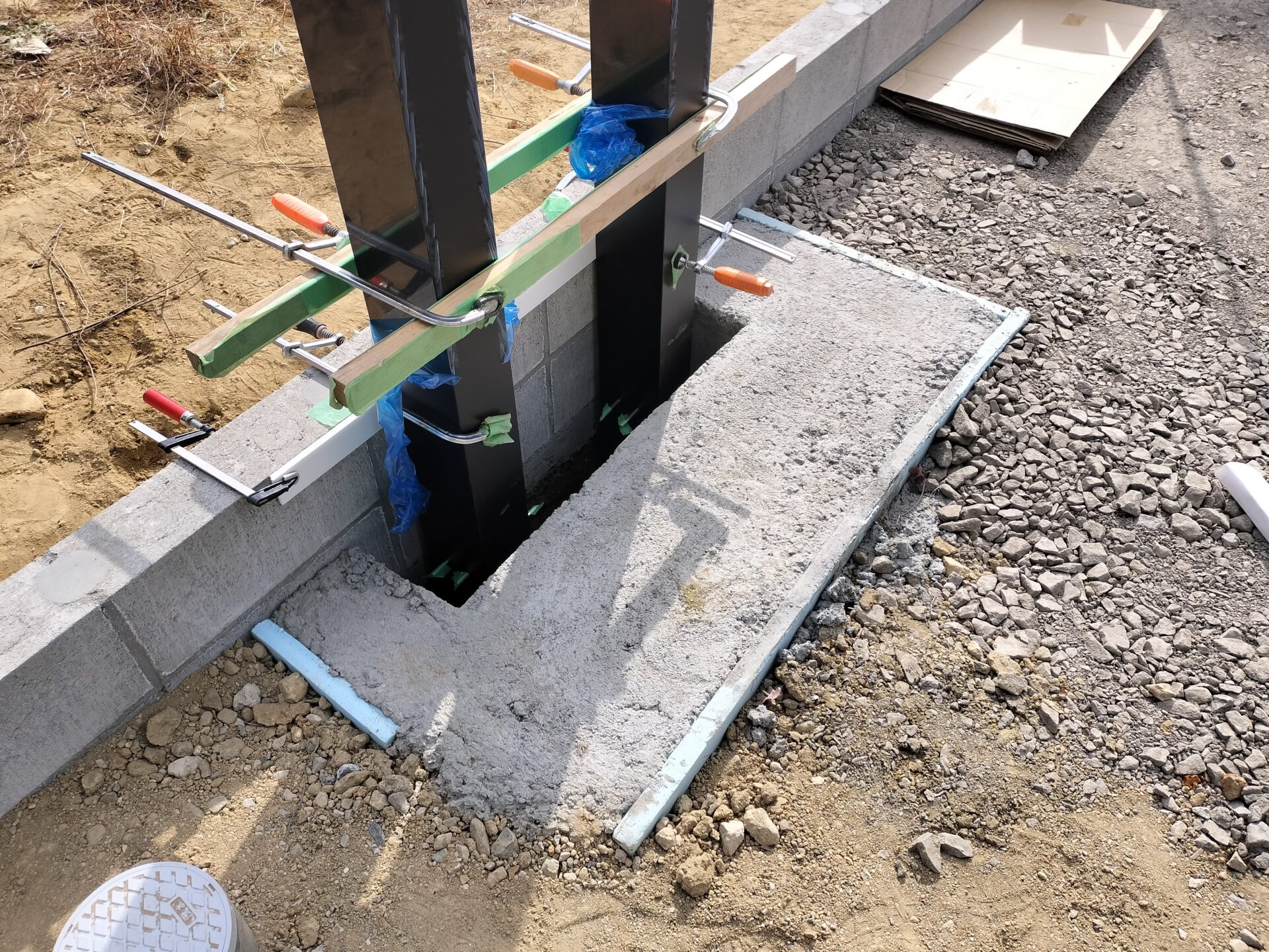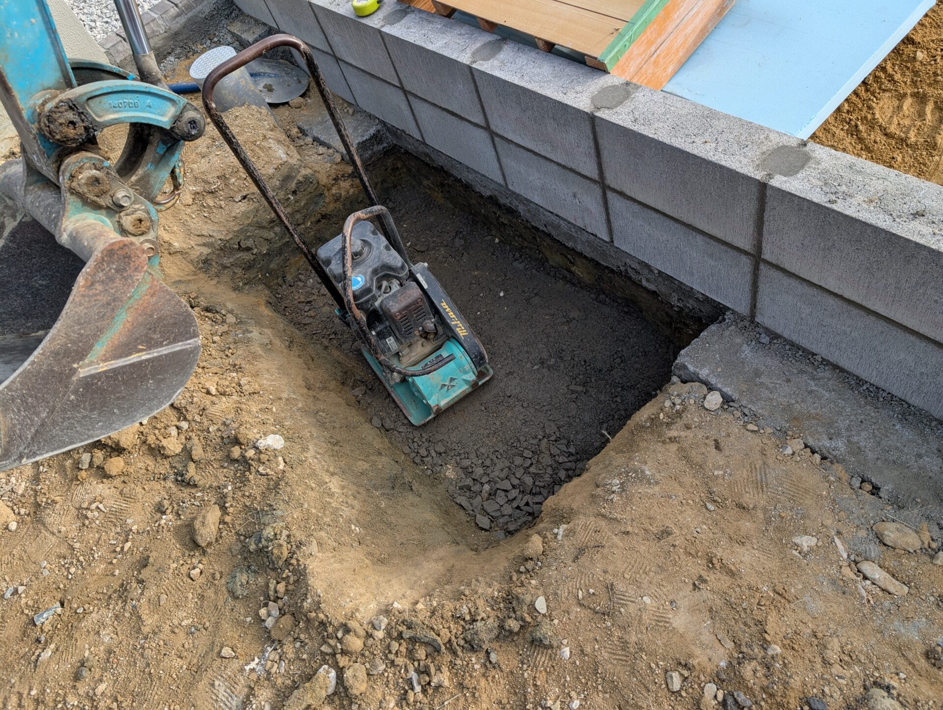 通気性とコストバランスを考慮し、コンクリートではなく砕石+砂利を選択