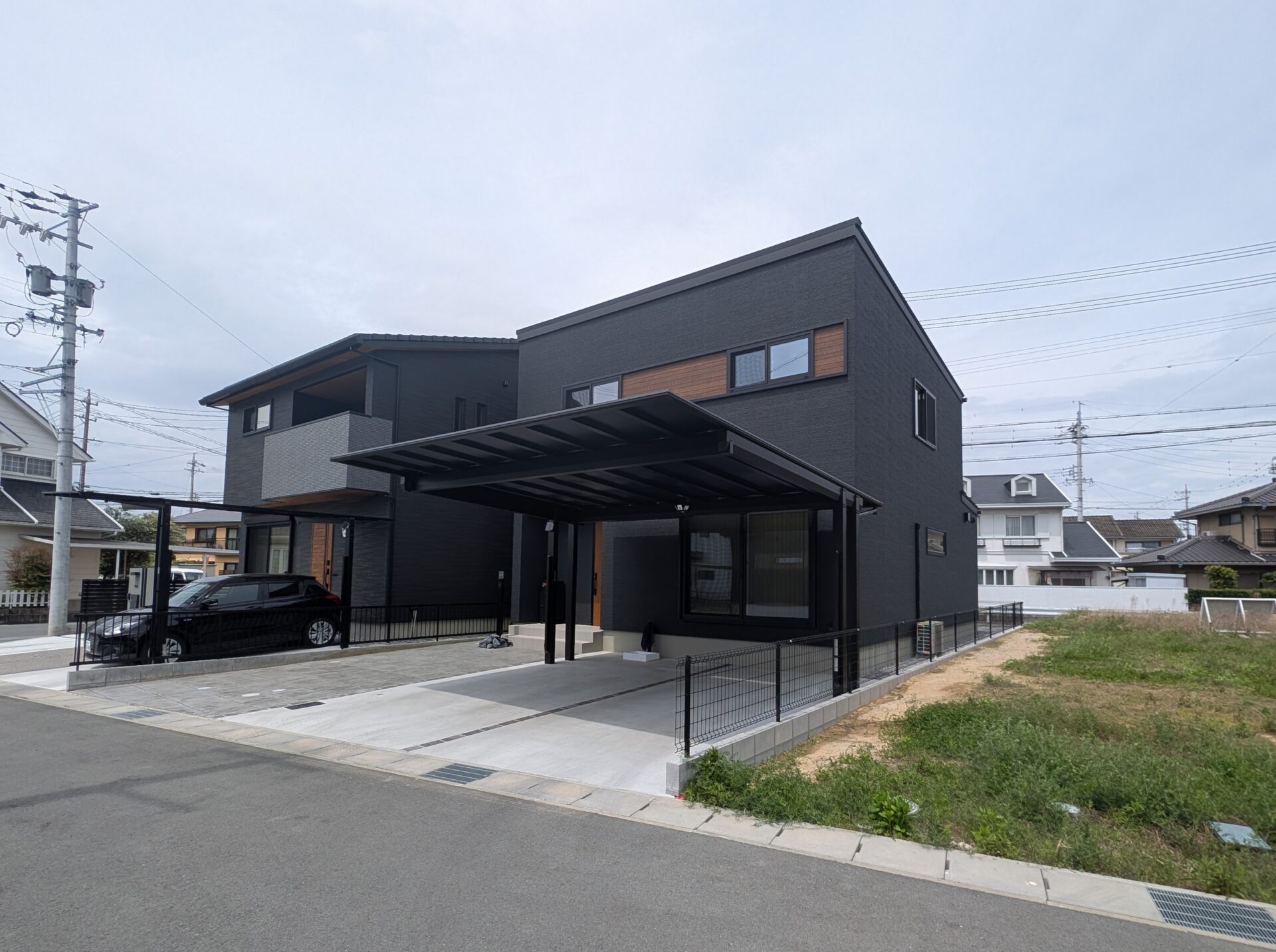 ●屋根材はマットブラックで、住宅外観とも調和