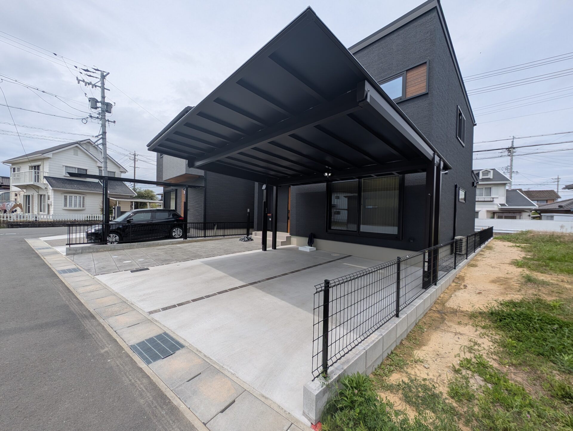 ●建物の印象に合わせ、外構もシンプル&実用性重視で構成