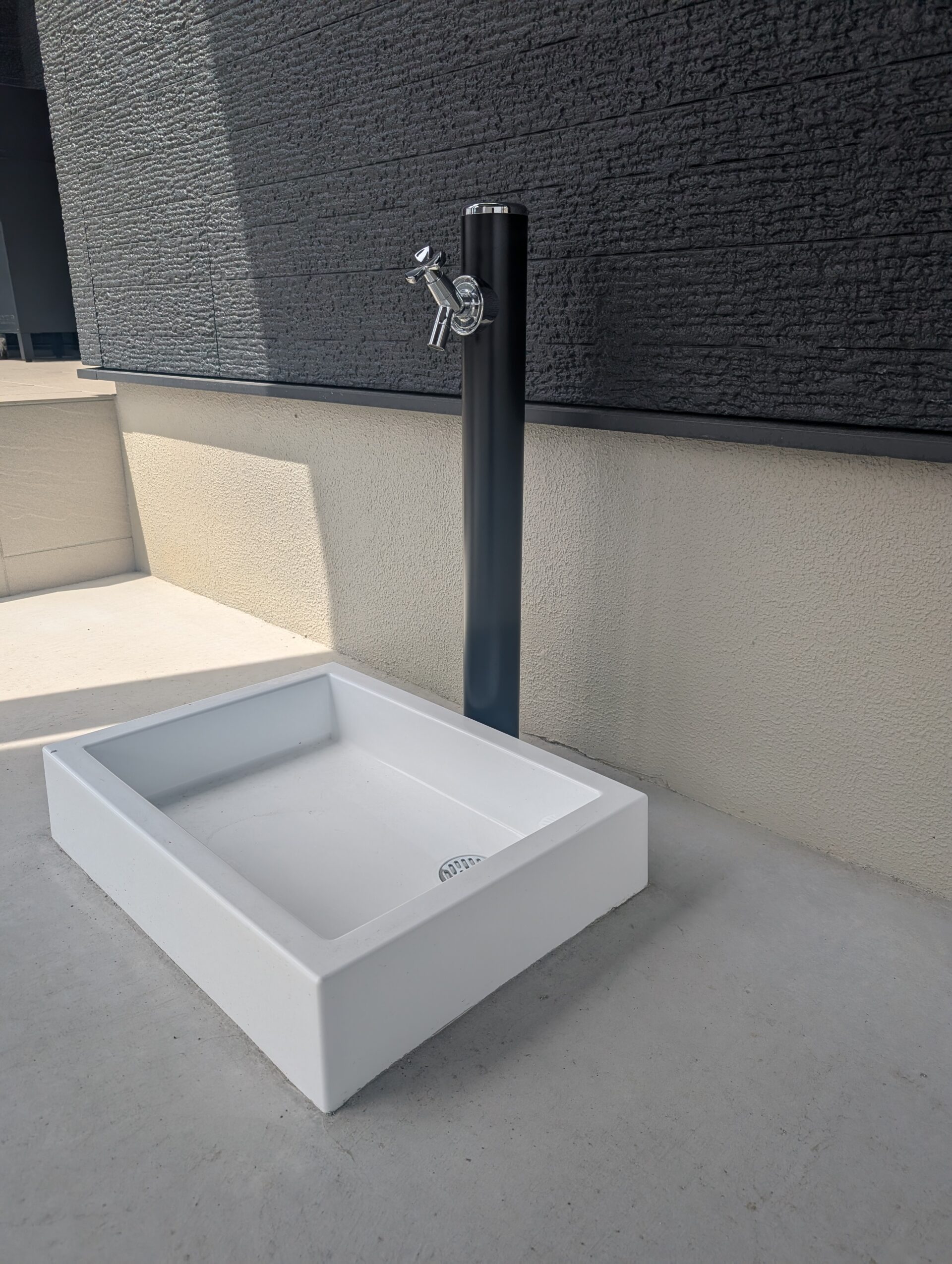 シンプルな水栓柱と水栓パン、水栓蛇口