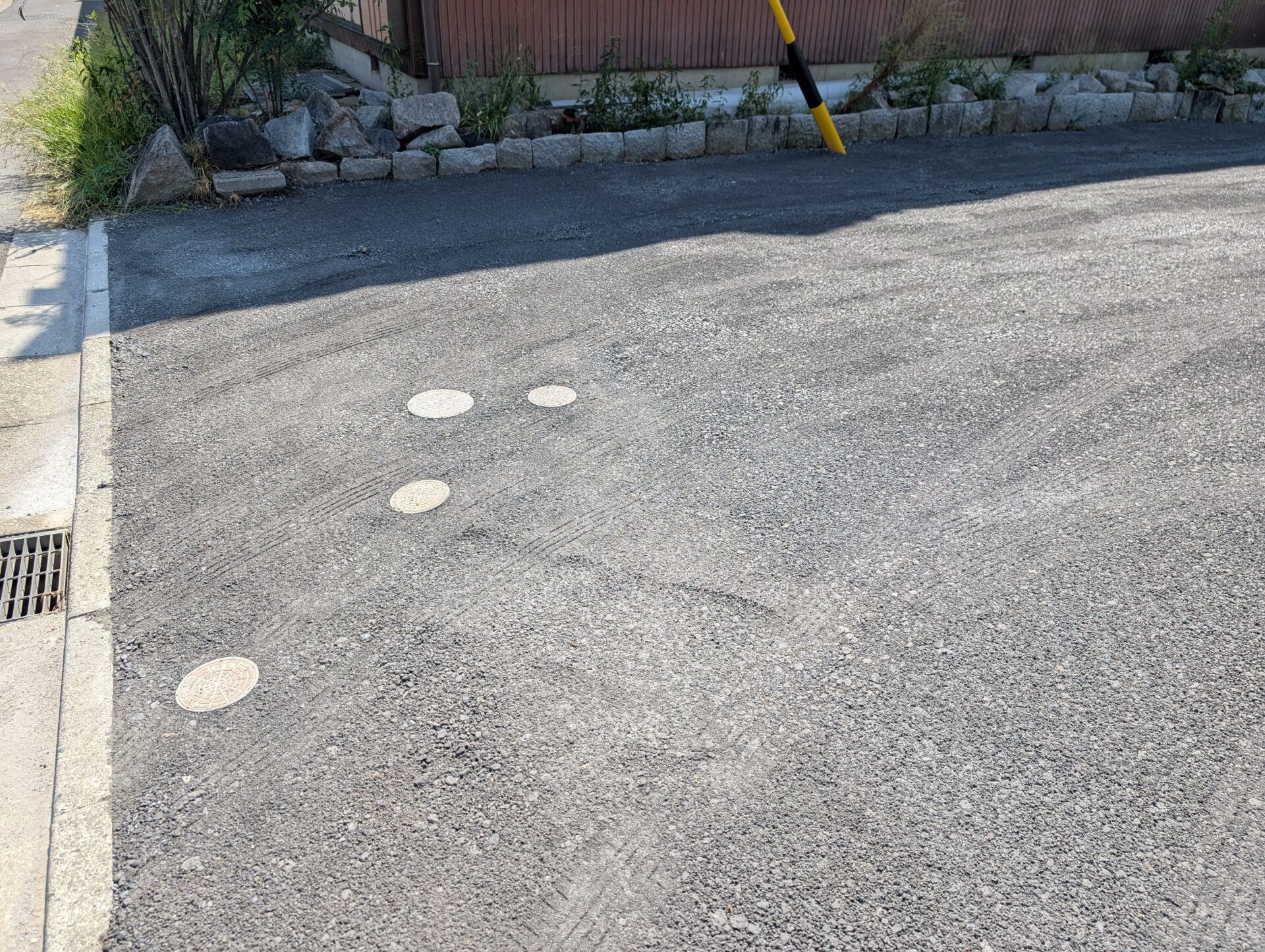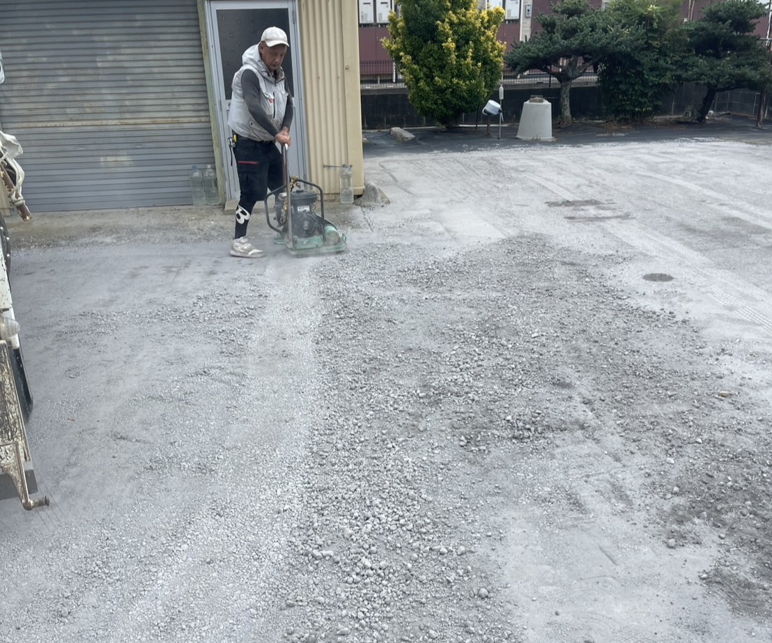敷地は土のままで、雨のたびにぬかるみが発生していました。車の出入りで表面が荒れ、粉じんも気になる状態でした。