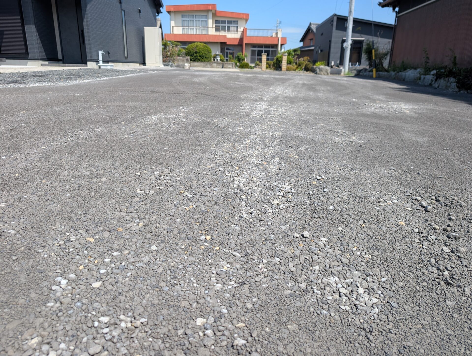 転圧で固まりやすく、駐車に適した締まりを確保できます。